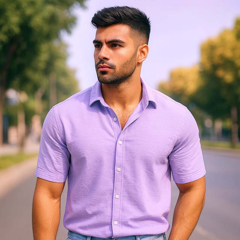پیراهن آستین کوتاه بنفش مردانه مدل باکسی